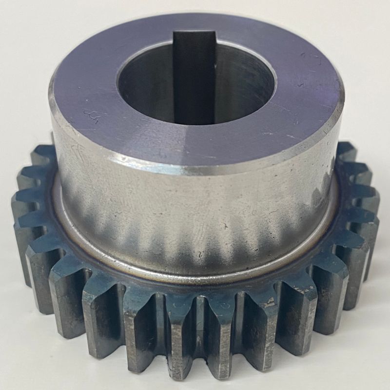 ในขณะที่เฟืองตรงเหล็กอัลลอยชุบแข็งและอบคืนตัวถูกเลือกใช้สำหรับความทนทานต่อการสึกหรอในอุปกรณ์ก่อสร้าง